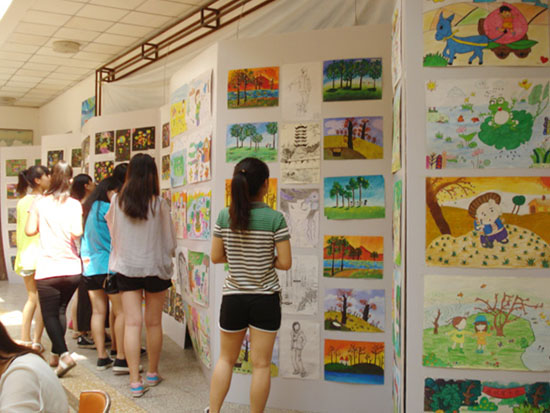 6月23日至27日,师范/文化创意学院在奎文校区图书馆一楼大厅举办学前教育专业2013级学生绘画习作展览。