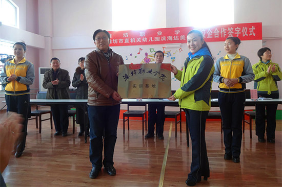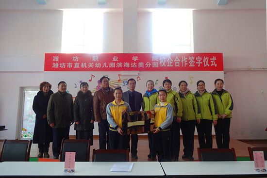 达美幼儿园是潍坊市机关幼儿园在滨海经济开发区开办的第一所幼儿园,占地面积5500平方米,是按照国际标准欧式风情打造的高品质幼儿园。按照协议,双方将在学生实训及教育科研等方面展开密切合作,努力为学前教育学生实训创造良好的环境,为学生实习提供科学的指导以及尽可能多的实践机会。