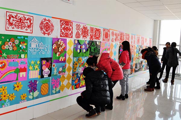 本次作品展览为期两周,共展出作品300多件,全部来自该院学前教育专业学生。学生结合日常所学,灵活运用各种美工材料和技法制作出丰富多彩的作品,涉及剪纸、折纸、纸雕、手工挂件、儿童彩画、儿童故事画、硬笔书法、幼儿园见习感言等多种形式,选取人物、动植物、故事传说等为表现对象,风格多样,创意独特,充满童趣,诠释了同学们对学前教育工作的热爱和青春阳光的生活态度。