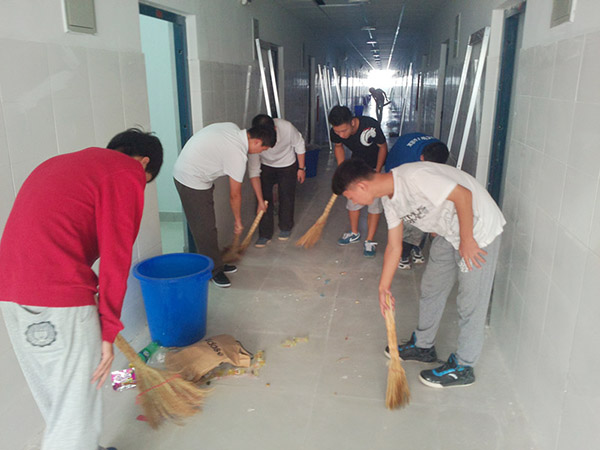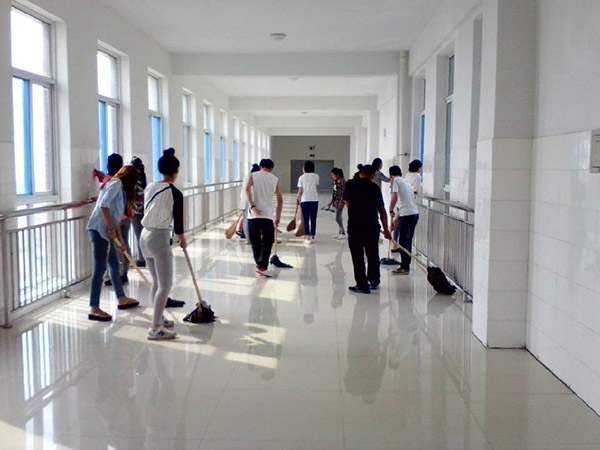 9月5日,师范学院/文化创意学院滨海校区部分学生成立了“我服务、我快乐”青年志愿者服务队,主动帮助工人师傅清扫卫生。他们看到部分公共卫生区的卫生需要清理,而工人忙不过来,于是不顾昨天搬家的疲惫,到8号宿舍楼B区帮助清扫走廊,到2号教学楼帮助清理施工垃圾,打扫走廊,擦拭栏杆。经过两个多小时的忙碌,把这两处地方都收拾得干干净净,为下一步的生活与学习创造了一个良好的环境。