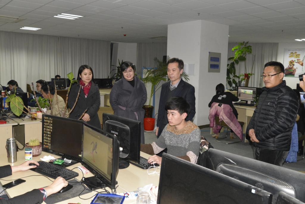 山东中动文化传媒有限公司坐落于潍坊软件园,2011年被认定为国家动漫企业、双软企业和高新技术企业。中动传媒已成为山东省原创动漫产量最大的专业公司之一、全国最大的动漫出版发行代理商之一和全国签约编剧人数最多的民营动漫公司之一。调研中,双方就产学深度融合、专业建设、学生实习实训、工学交替等问题进行了探讨,希望在今后的实践中能探索实践更好的校企合作方法。在公司领导的带领下,一行人还参观了公司的动漫基地。