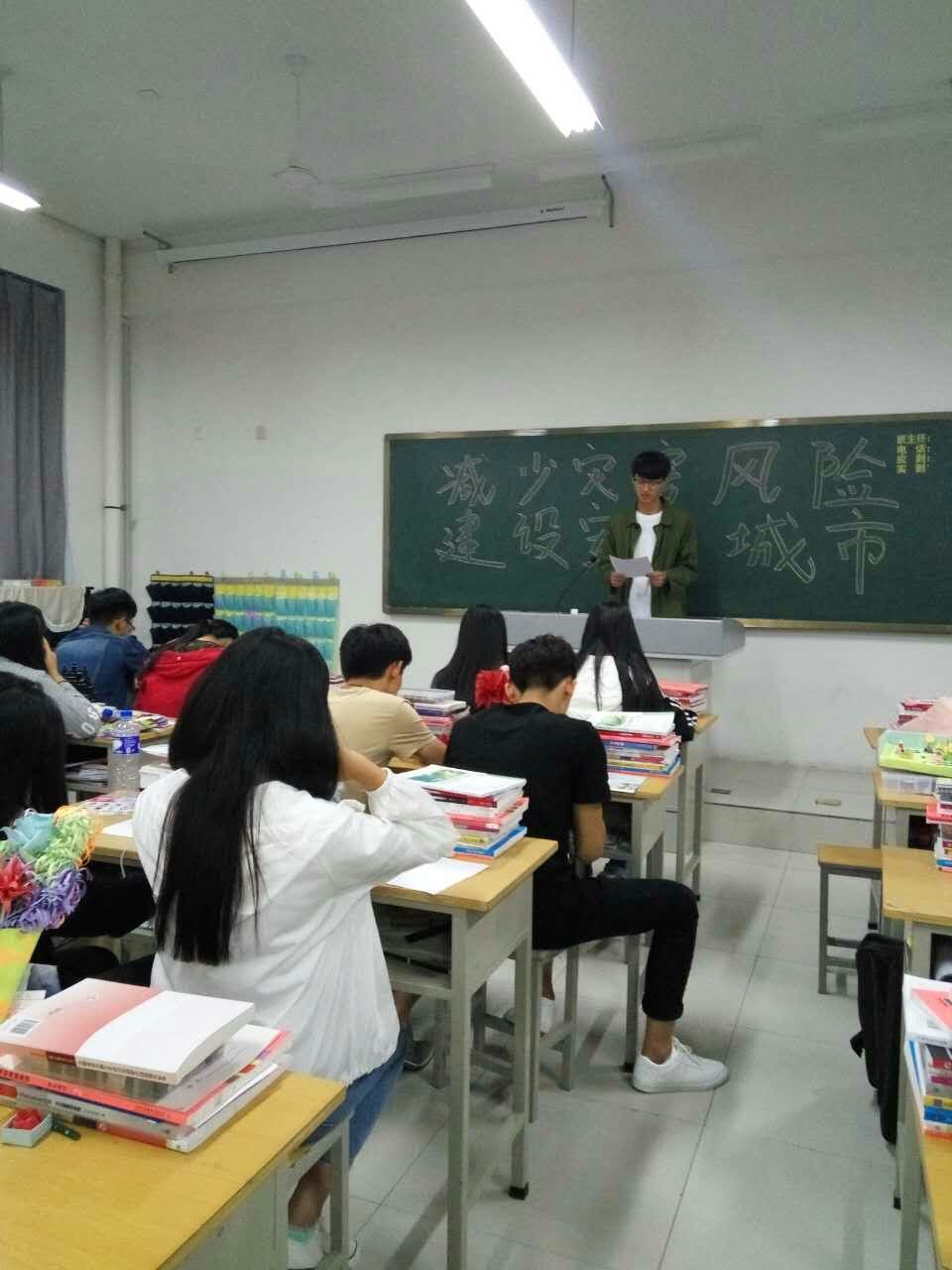 为迎接全国第八个“防灾减灾日”的到来,进一步做好防灾减灾宣传教育工作,切实提高全体学生防范自然灾害的意识和能力,5月11晚,师范/文化创意学院各个班级利用晚自习时间召开以“减少灾害风险,建设安全城市”为主题的班会。