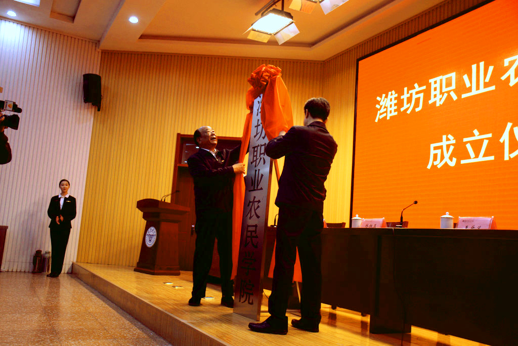 李宽端市长与王乐义专家,在一片热烈的掌声中为潍坊职业农民学院揭牌!(供稿人:赵文军)