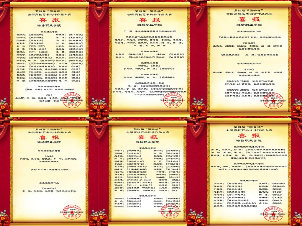 接到比赛通知后,文化创意学院高度重视,组织学院师生充分发挥专业优势,积极备赛,最终多项作品获奖。体现了学科教学水平和教学成果,检验了专业人才培养成效,是加强专业建设、注重人才培养的成果体现。(于强供稿)
