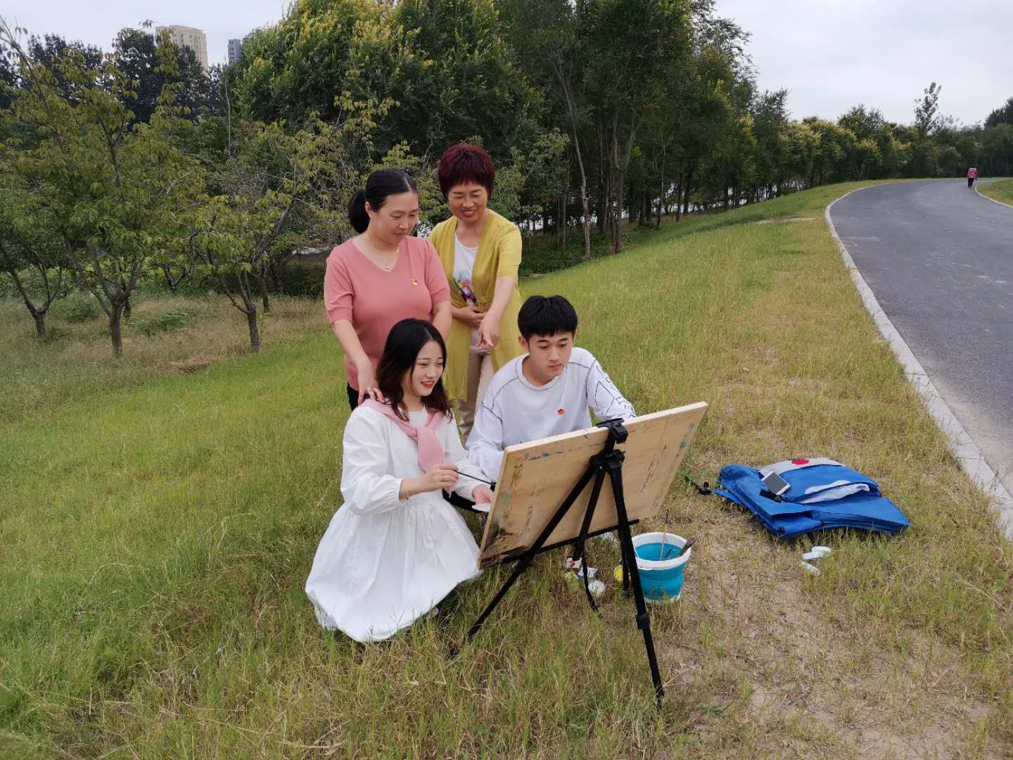 文创学院党总支负责同志带领党员师生首先参观了潍坊经济开发区北城街道向阳社区的建设情况,了解了社区建设发展历程、创新做法及活动开展情况。参观完毕后,文创学院的党员师生与社区工作人员一起到向阳社区苏杭花园小区走访慰问困难群众,为他们送去牛奶、大米、月饼等慰问品,送去节日的祝福,又鼓励他们坚定信心,战胜困难。随后,党员师生又围绕河湖文化建设到白浪河畔进行了采风和创作,用绘画的形式宣传潍坊的母亲河白浪河文化,营造全社会共同关心和保护河湖的良好氛围。