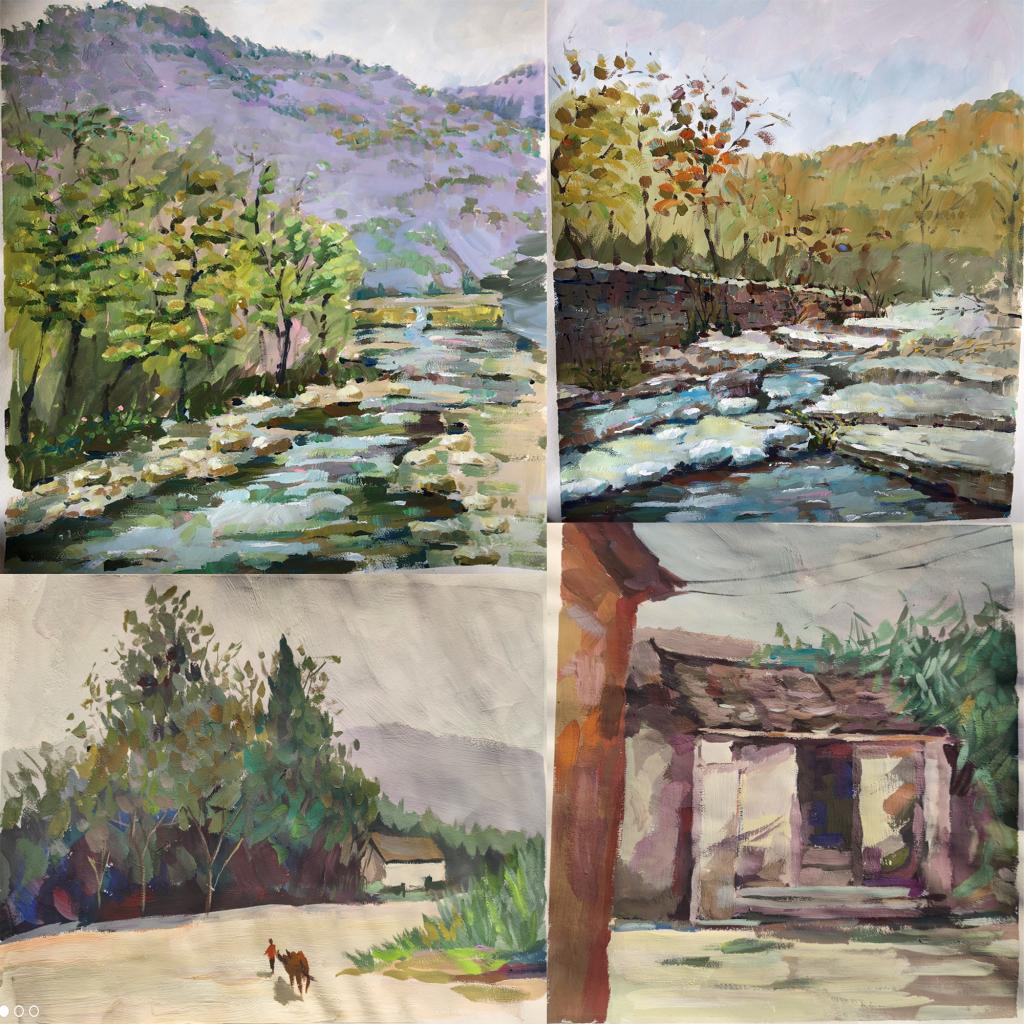 写生期间,指导教师带领学生了解当地的风土人情和山川地貌,现场示范、指导学生写生创作,并于晚上对学生的作品进行有针对性的讲评,让学生感受到艺术源于生活又高于生活。同时,学生们也积极遵守纪律,认真学习,其墨笔丹青出神入化。