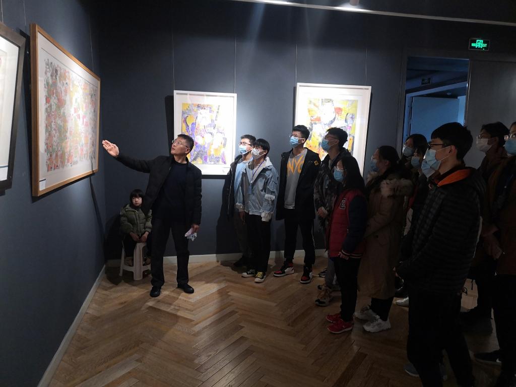 活动中,我院潍坊民间技艺传承基地年画工作室项目严海涛老师带领2019级与2020级15名环境艺术设计专业学生,到潍坊美术馆参观了“撷古契今——潍坊年画发展与创新成果展”,并到“十笏园”文化街区非遗传承基地进行研学,向学生介绍潍坊年画的历史与现状,深入了解和学习潍坊年画新中国成立后三次改革的创新成果,亲身感受在时代变革和大文化影响下潍坊年画的新面貌。