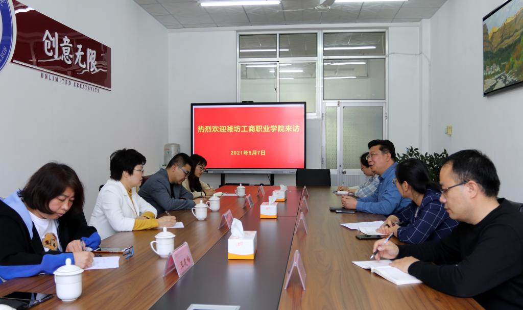 5月7日下午,潍坊工商职业学院幼教艺术学院院长冯玉香、实习实训管理处处长柴元昌及部分骨干教师来我校文化创意学院考察交流学前教育专业办学及实训室建设。文化创意学院主要负责同志及相关专业骨干教师参加交流活动。