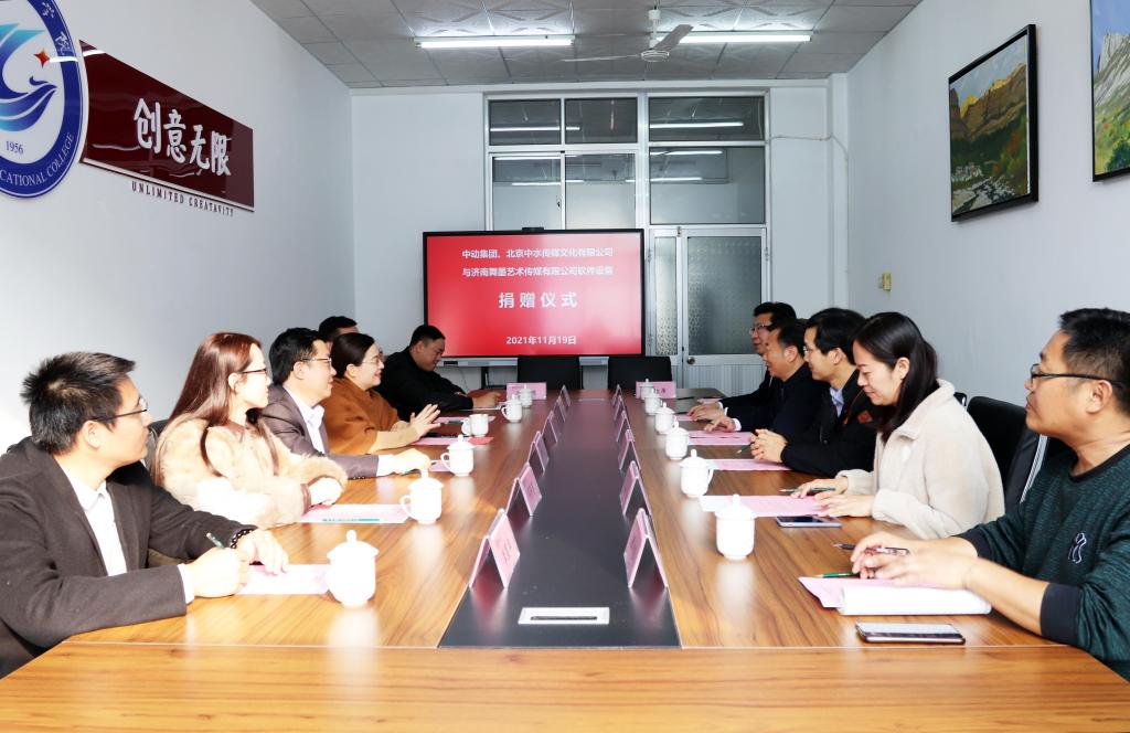 11月19日上午,文化创意学院与中动集团(山东中动教育科技有限公司)、北京中水传媒文化有限公司与济南舞墨艺术传媒有限公司软件设备捐赠仪式在奎文校区举行。学院党委委员、副院长贺志强、中动集团执行长卢红星、济南舞墨艺术文化传播有限公司总经理朱戎墨、科技处、文化创意学院主要负责同志及相关专业教师出席仪式。