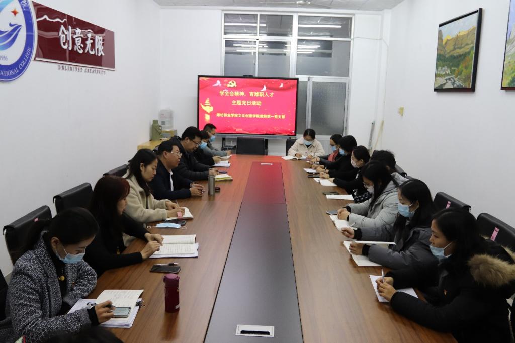 为引导全体党员深刻学习领会党的十九届六中全会精神,更好地发挥党员的先锋模范作用,激励党员在工作中积极进取,12月22日下午,文化创意学院教师第一党支部在16号楼319会议室开展“学全会精神,育潍职人才”主题党日活动,学院党委副书记、副院长桑福岭,文化创意学院院长孙维富,党总支副书记王红玉及教师第一党支部全体党员参加。