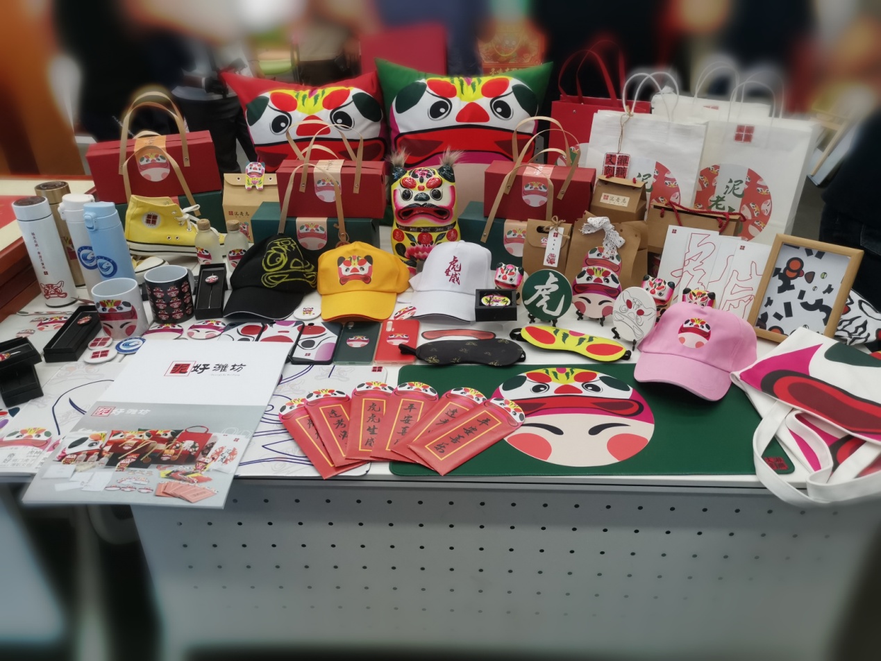 本次参赛,“潍职文创——《泥好潍坊》”以潍坊非遗泥老虎为设计元素,推陈出新,共计百余件创意产品,种类丰富形态多样,运用手工制作、UV打印等多种形式,总共设计了帆布包、抱枕、明信片、化妆镜、T恤、帽子、手机壳等20多种系列文创产品,创作出一系列的文化衍生品,使其融入生活,具有美观性与实用性。