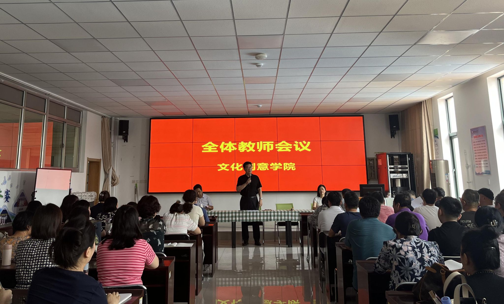 7月11日下午,文化创意学院在奎文校区16号教学楼召开全体教师会议,安排部署暑期重点工作,全体教师参加。
