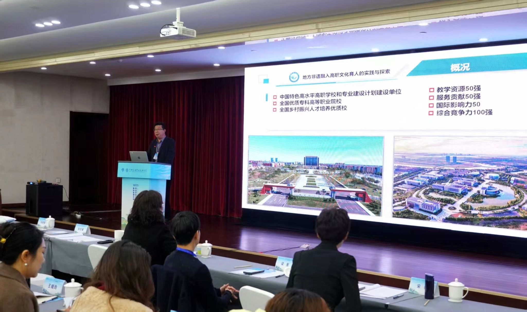 备课活动上,文化创意学院主要负责同志作了题为《非遗赋能 以文化人:地方非遗融入高职文化育人的实践与探索》的交流发言。发言从构建协同文化育人机制、搭建非遗文化传承平台、开设非遗文化特色课程、开展非遗理论科学研究、营造校园非遗文化氛围、打造学生社区非遗空间、研发“潍职文创”文化品牌等七个方面介绍了学院在地方非遗文化传承与创新,赋能专业人才培养方面的典型经验与创新做法,为各职业院校提供了可借鉴的实践参考。