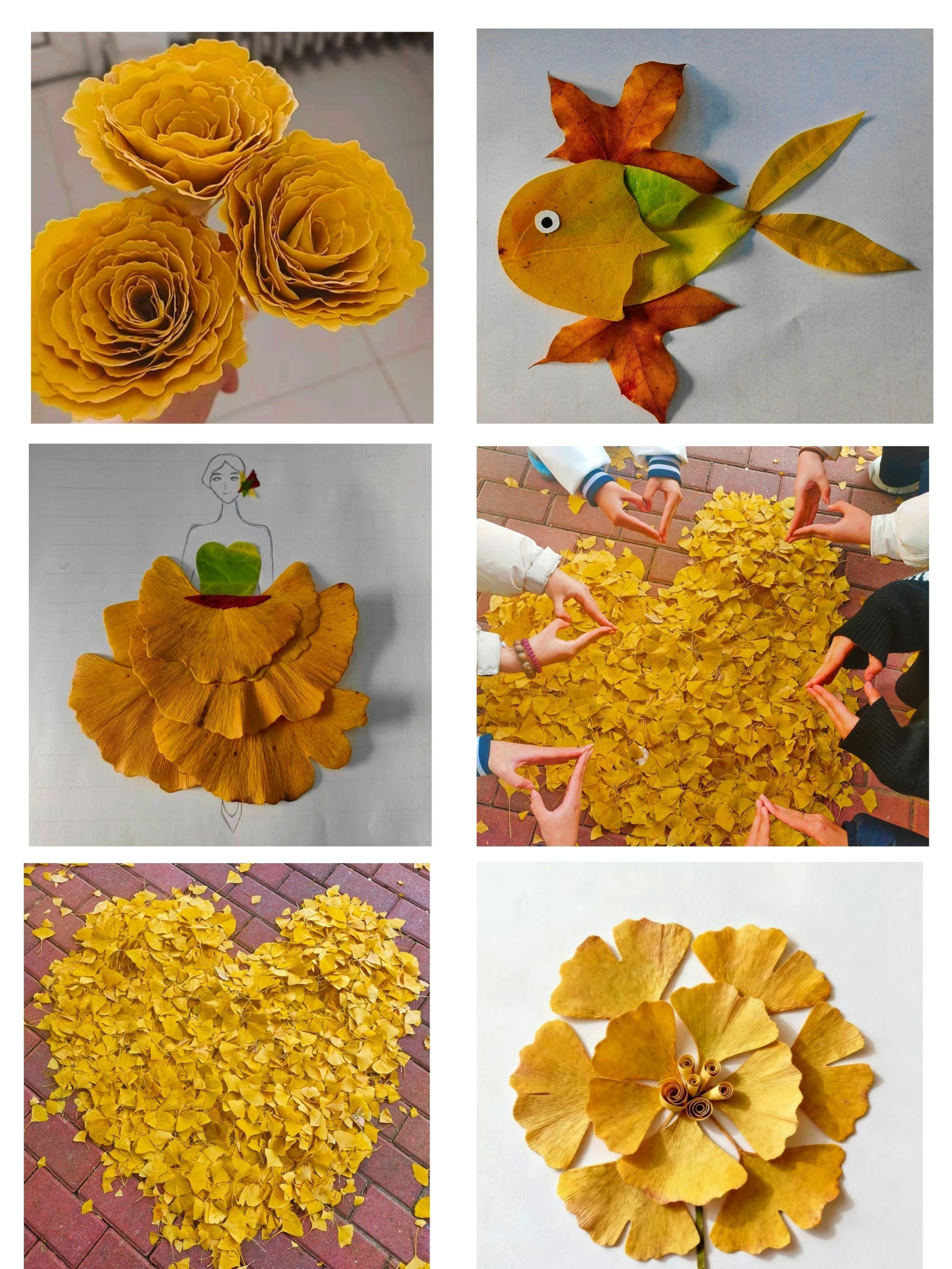 本次活动以“校园寻迹”拉开序幕。学生们分组担任“色彩记录员”与“形态观察员”,在校园中收集落叶、果实等自然素材,细致捕捉初冬色彩的渐变与形态的微妙变化,于寻常景致中发现季节流转的美学印记。随后的“冬日静思”环节,师生闭目聆听风声鸟鸣,感受阳光的温润与空气的清冽,在沉浸体验与诗意交流中体悟“一叶知岁”的哲思,拉近与自然的距离。最后的“创想工坊”中,同学们以自然素材为灵感,运用剪、拼、贴等手法创作“叶语画境”拼贴画。作品既定格了初冬景致,又融入了情感与想象,展现出扎实的动手能力与丰富的艺术创造力。