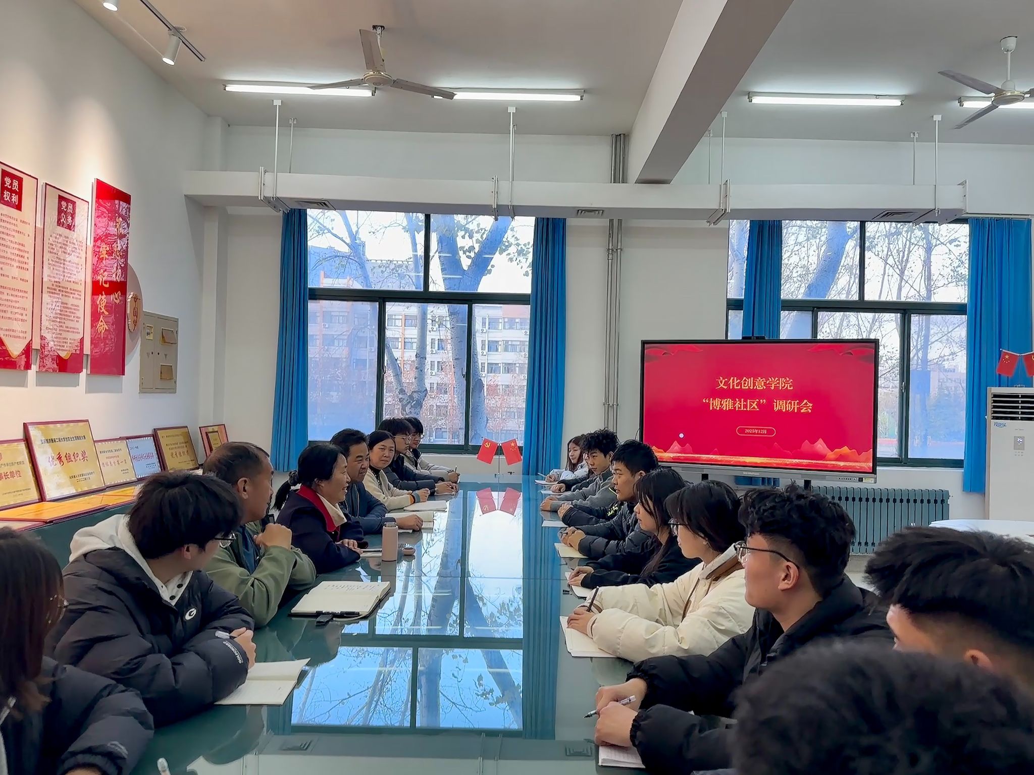 为深入推进“一站式”学生社区综合管理模式建设,加强学院与学生间的沟通联系,精准把握学生成长需求,切实解决学生在学习生活中的实际问题,12月1日,学院在文化创意学院博雅社区开展调研座谈活动,党委委员、宣传部部长鞠桂芹,文化创意学院党总支负责同志、学生管理负责同志、辅导员办公室主任及来自不同年级、不同专业的16名学生代表参加。