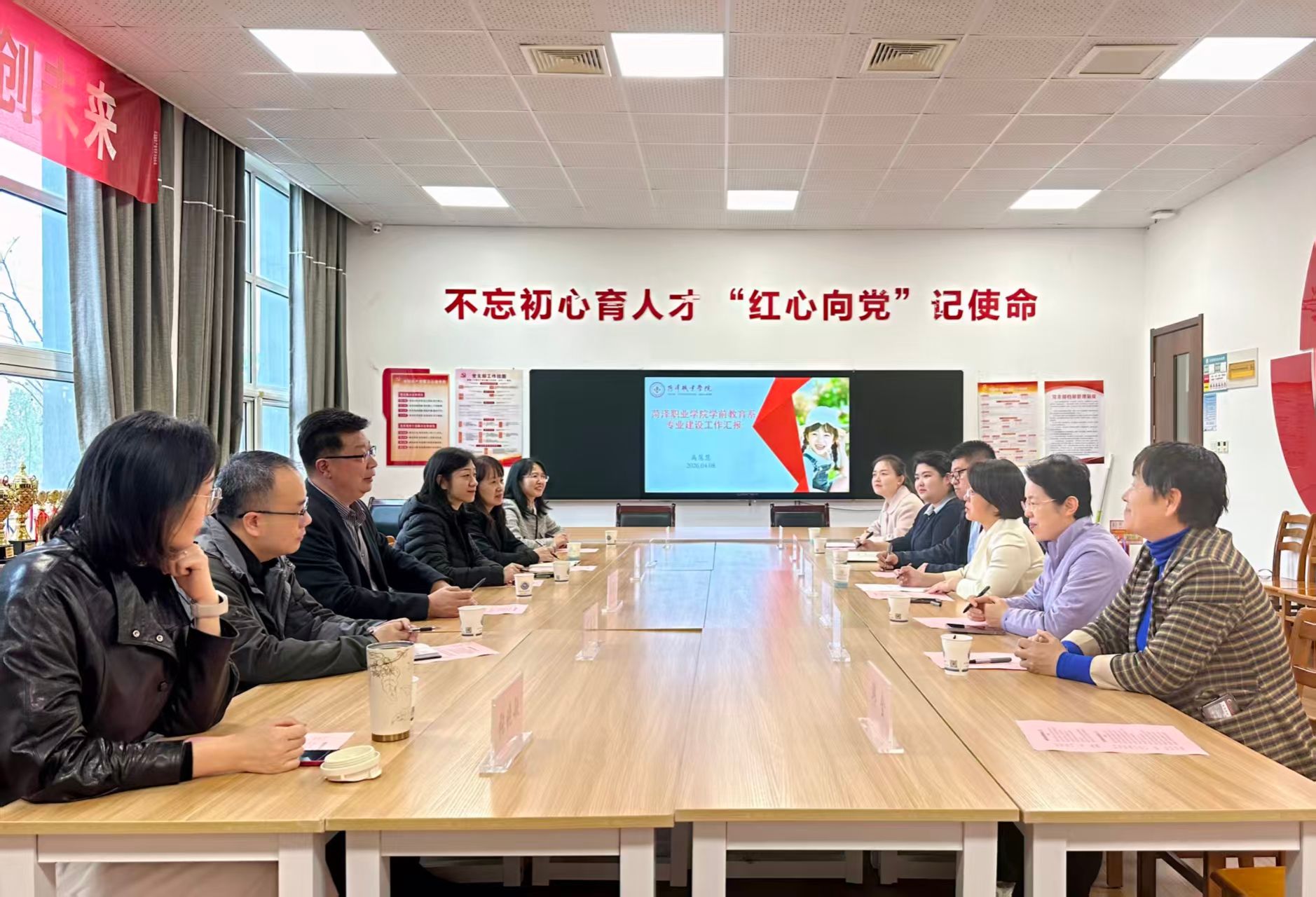 在菏泽职业学院,我院一行在该校学前教育系党政负责同志及骨干教师的陪同下,先后参观了学前教育专业各类实训场馆,详细了解了其实训教学布局、设备配置及教学开展情况。随后,双方围绕学前教育专业教师转型这一议题开展专题座谈,重点探讨了从教学能力重塑、行业实践赋能、教研水平提升等维度助力教师转型的具体路径与有效做法。
