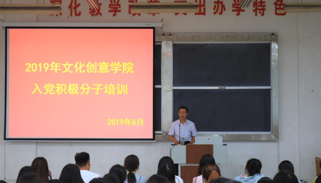 为加强对学生入党积极分子的思想政治教育,端正同学们的入党动机,6月13日下午,文化创意学院党支部负责同志对该院120名学生入党积极分子进行了第一讲专题党课培训。