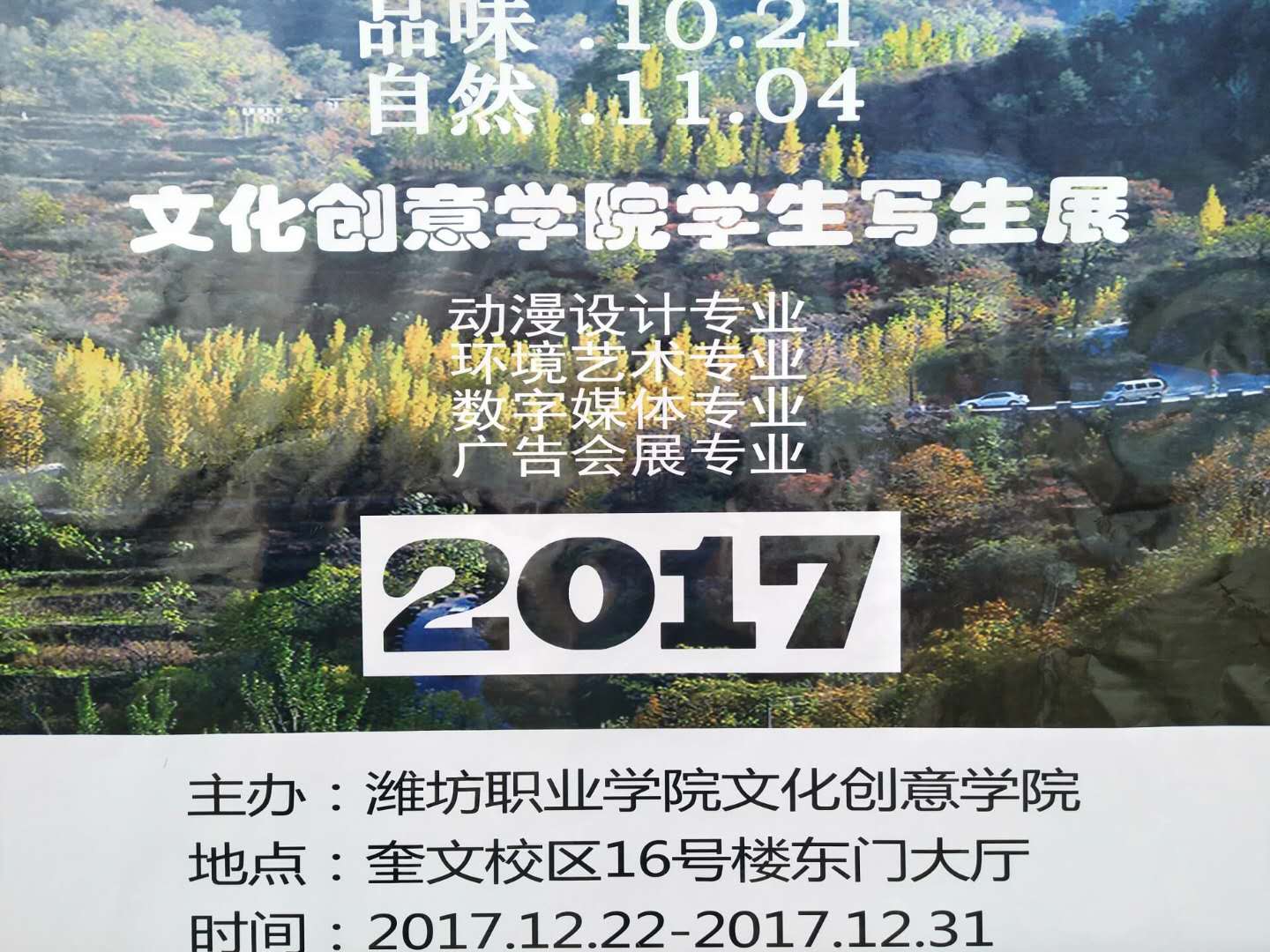 为了展示17级艺术设计班学生的写生成果,文化创意学院于2017年12月22日至12月31日在奎文校区16号楼大厅举行“文化创意学院学生写生展”活动,300余幅原创作品展出。