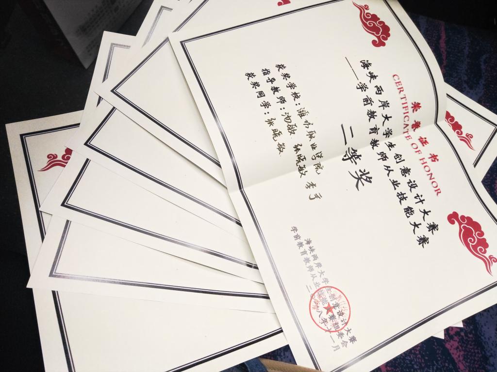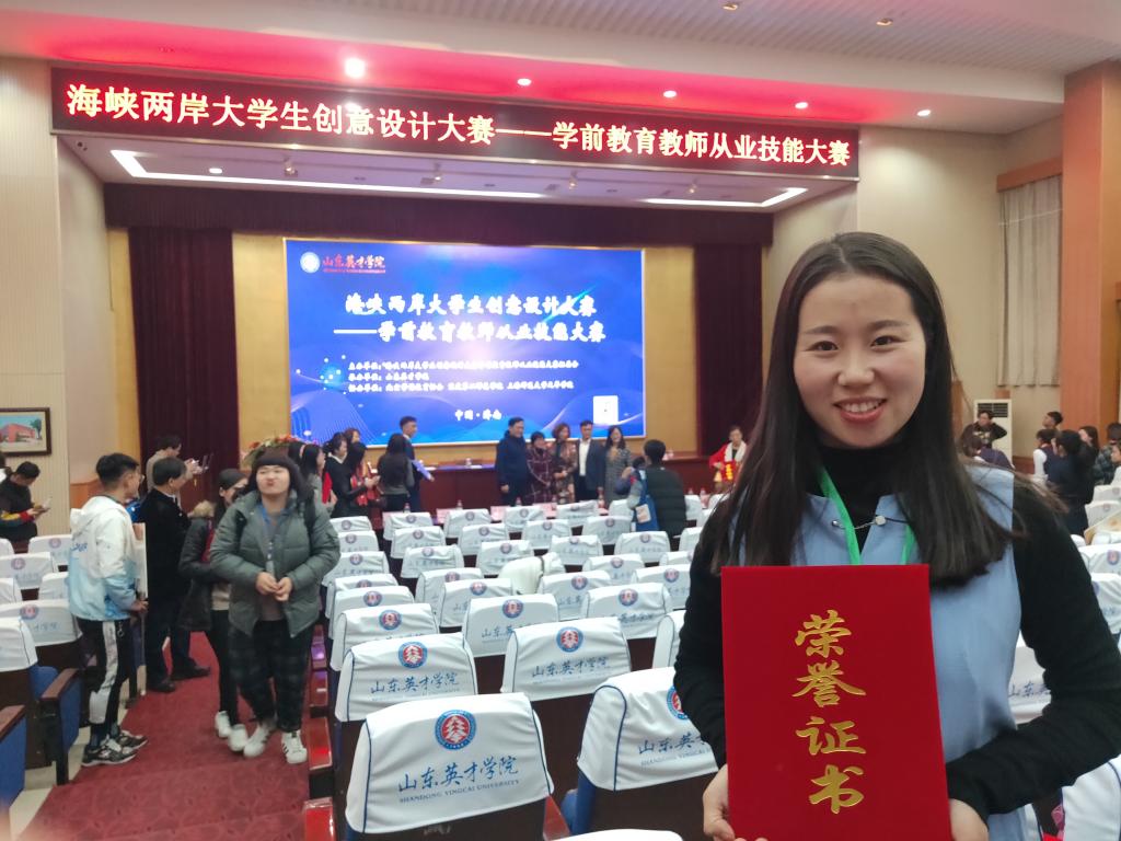 11月1日,海峡两岸大学生创意设计大赛——学前教育教师从业技能大赛在山东英才学院落下帷幕,文化创意学院喜获硕果,在大赛中共获二等奖1名,三等奖2名,优秀指导教师3名,并被评为优秀组织奖。