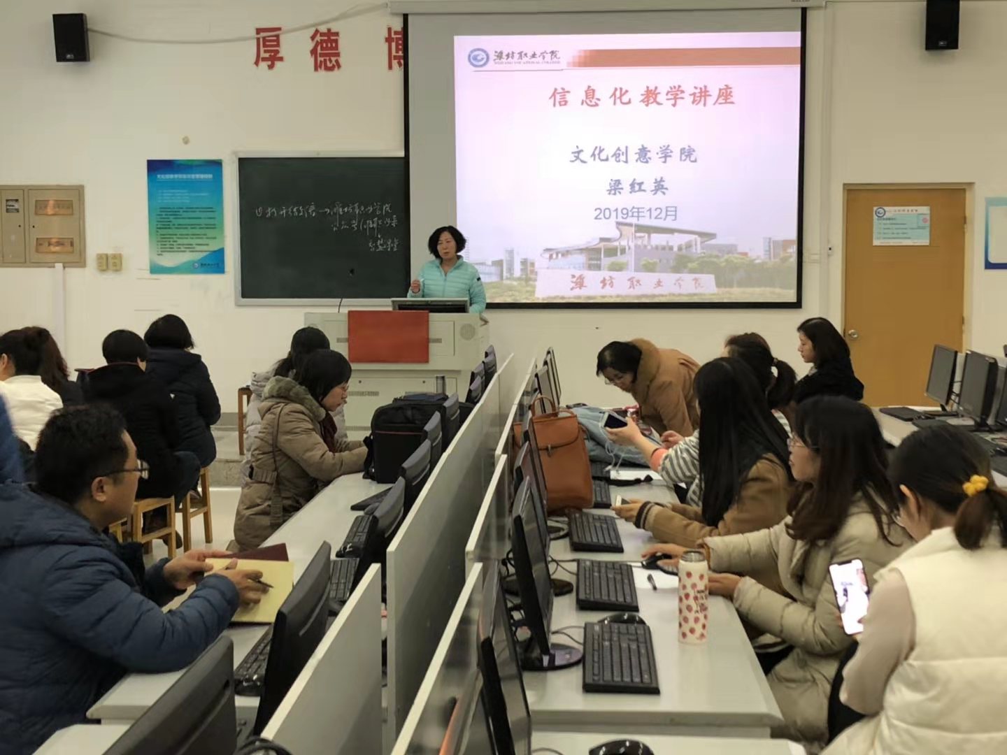 为进一步推进学院信息化教学建设,推动课堂教学深层次改革创新,全面提升教师信息化教学理念、方法和能力,12月3日下午,文化创意学院在16号楼机房举办了信息化教学专题讲座,学院分管教学副院长、全体教师60余人参加了会议。