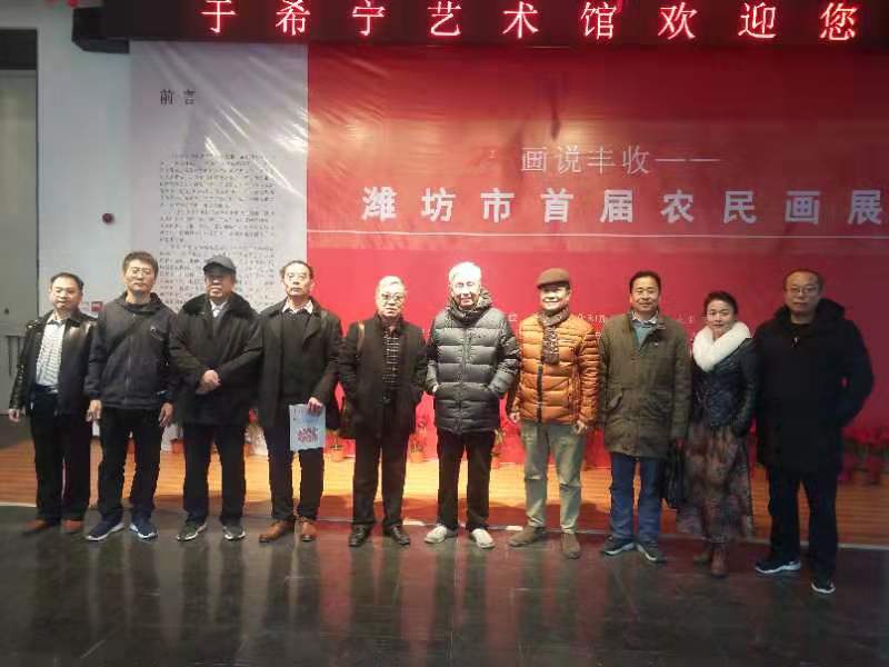 由潍坊市书画家联谊会,潍坊市美术馆,潍坊职业学院文化创意学院主办的“画说丰收——潍坊市首届农民画展”,12月5日上午在潍坊美术馆开展。