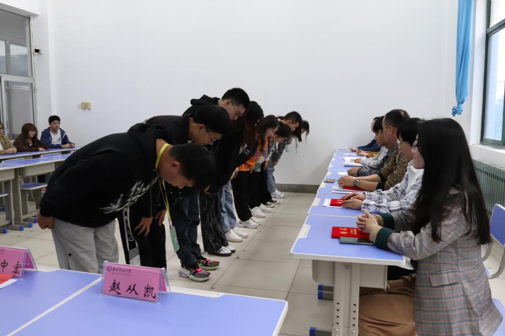 拜师仪式上,文化创意学院主要负责同志为学徒班的师傅颁发了聘书,学徒们依次向师傅鞠躬行拜师礼。拜师礼成后,师徒代表分别做了表态发言。