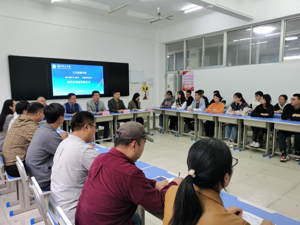 10月14日下午,文化创意学院在奎文校区16号楼104室举行了校企共建数字媒体艺术设计专业、动漫制作技术专业现代学徒制拜师仪式。文化创意学院主要负责同志、教务处有关领导、济南舞墨文化传播有限公司、山东中动教育科技有限公司企业负责人、企业导师及学院部分师生参加了本次仪式。