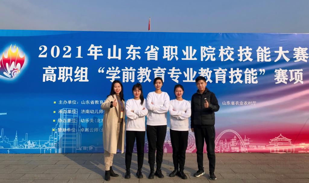 11月26日—11月29日,山东省职业院校技能大赛高职组“学前教育专业教育技能”赛项在济南幼儿师范高等专科学校举行,来自全省31所高职院校的队伍参加了本次比赛。经过激烈角逐,由文化创意学院教师汤敏、于强担任指导教师,学生范长丽、孙合菊、李小旭组成的参赛团队荣获三等奖。