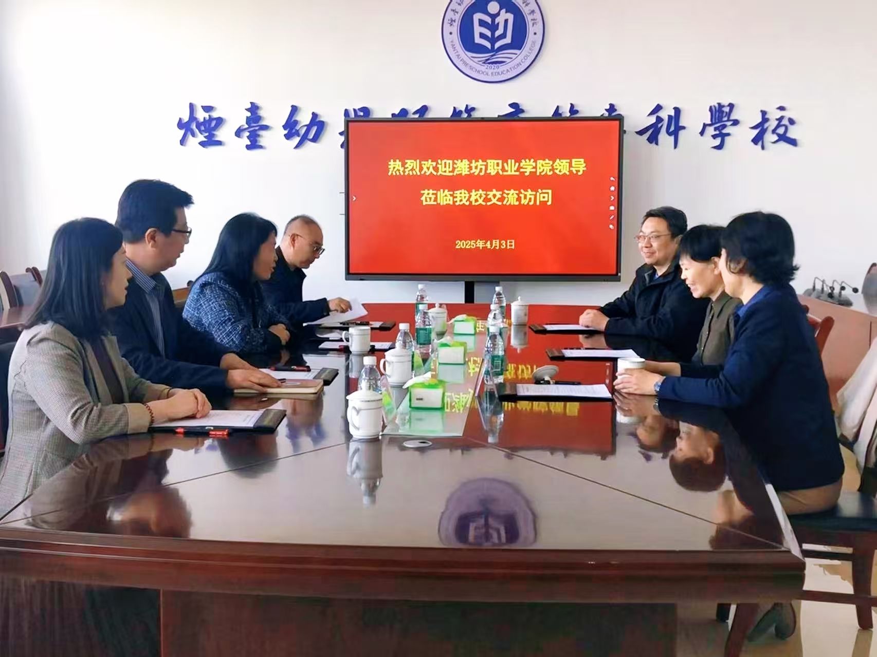 4月3日,学院党委委员、宣传部部长鞠桂芹,教务处、文化创意学院负责人一行到烟台幼儿师范高等专科学校开展考察交流。烟台幼儿师范高等专科学校党委副书记、校长冯开梅,党委委员、副校长宋修波及相关部门负责人参加了交流。