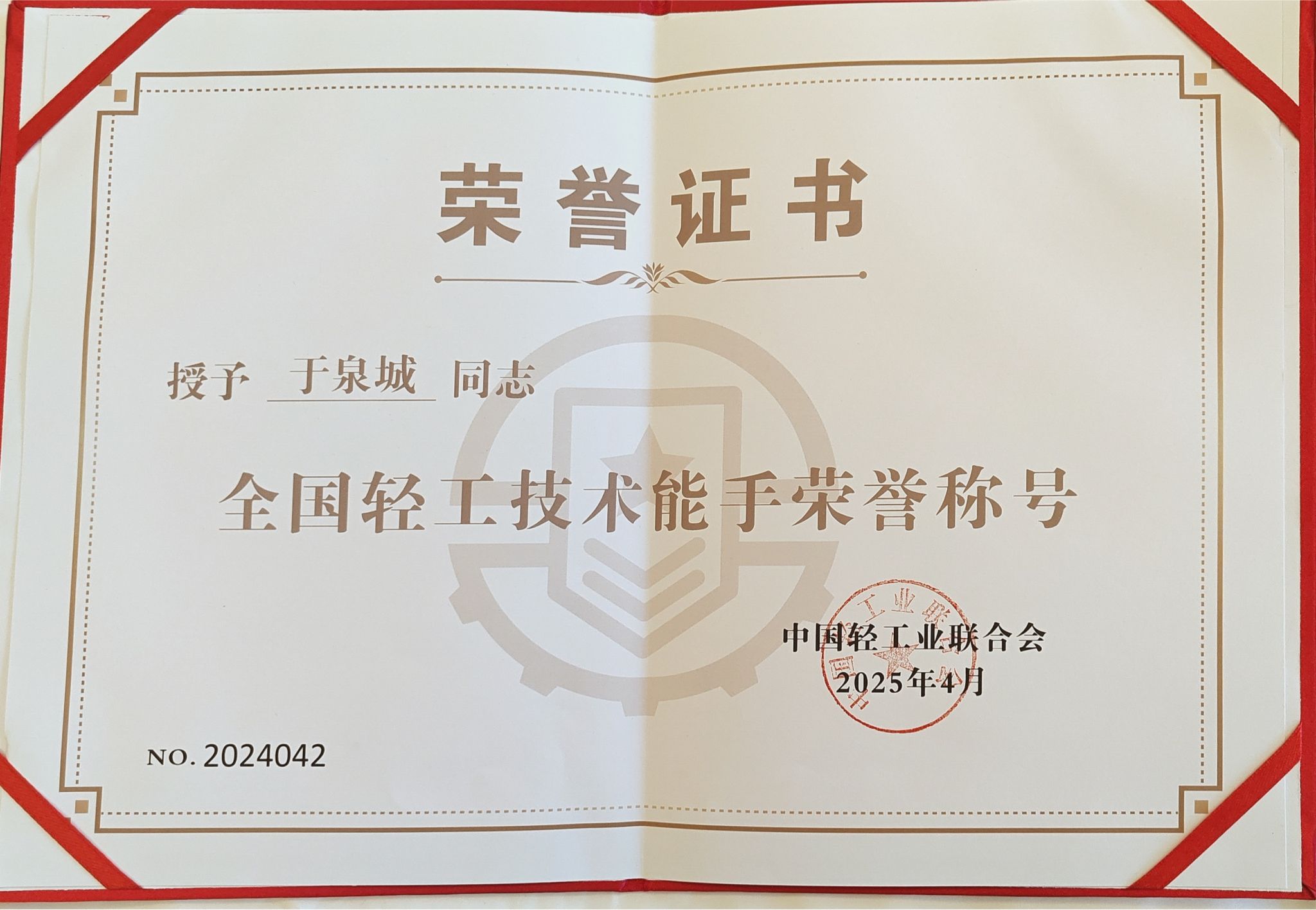 近日,我院文化创意学院教师于泉城接连荣获国家级、省级技能人才表彰——在2025年全国行业职业技能竞赛轻工大赛动员大会上被授予“全国轻工技术能手”称号,同时入选山东省人力资源和社会保障厅公布的2024年度“山东省技术能手”名单,展现了我院教师队伍的高水平专业技能。