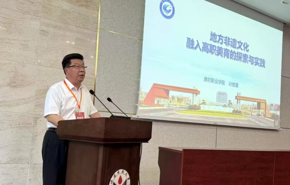 潍坊职业学院作为首批联盟成员单位,在论坛上作《地方非遗文化融入高职美育的探索与实践》主题发言,从“构建美育协同育人机制”“搭建非遗文化传承平台”“开设非遗文化美育课程”“开展非遗理论科学研究”“营造校园非遗文化氛围”“打造学生社区非遗空间”“研发‘潍职文创’文化品牌”七个方面,分享了学院在传统文化融入美育实践领域的经验与做法,受到与会代表的一致好评。