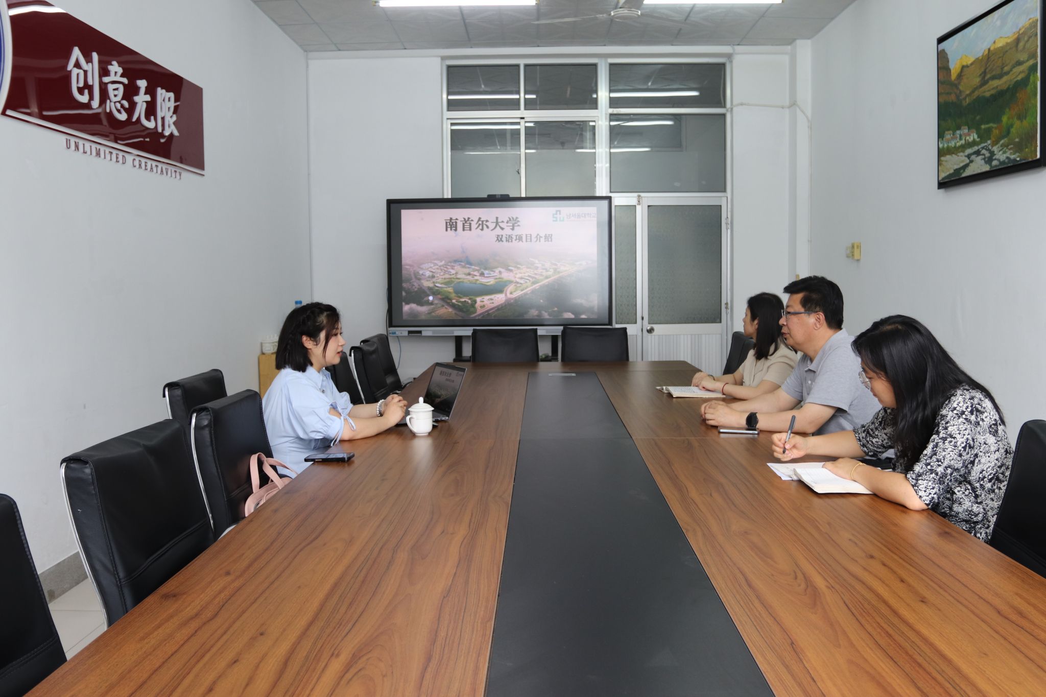 文化创意学院主要负责同志对客人的到访表示欢迎,并介绍了文化创意学院办学基本情况、专业设置、师资力量、学生发展等情况。双方共同观看了学院宣传片。刘小煜对学院的热情接待表示感谢,介绍了南首尔大学的基本情况、校园文化、继续教育项目等,并提出进一步深化教师互访、学生交流等合作意向。随后,双方围绕学生赴韩留学政策、教师研修等议题开展深入交流。