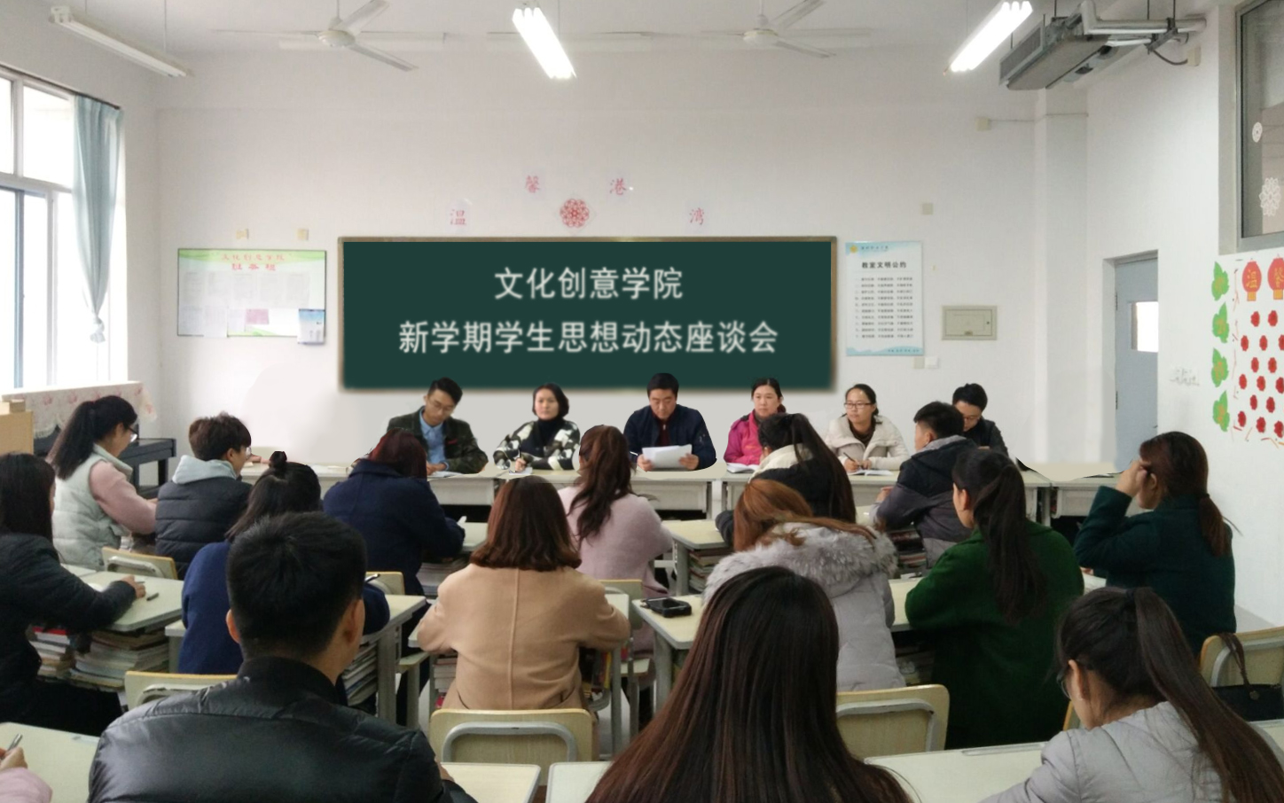 为深入了解学生寒假期间及开学后在思想、学习、生活等方面的情况,掌握学生的思想动态,听取学生的意见和建议,3月1日下午,文化创意学院召开新学期学生思想动态座谈会,2016级学生代表参加了座谈会。