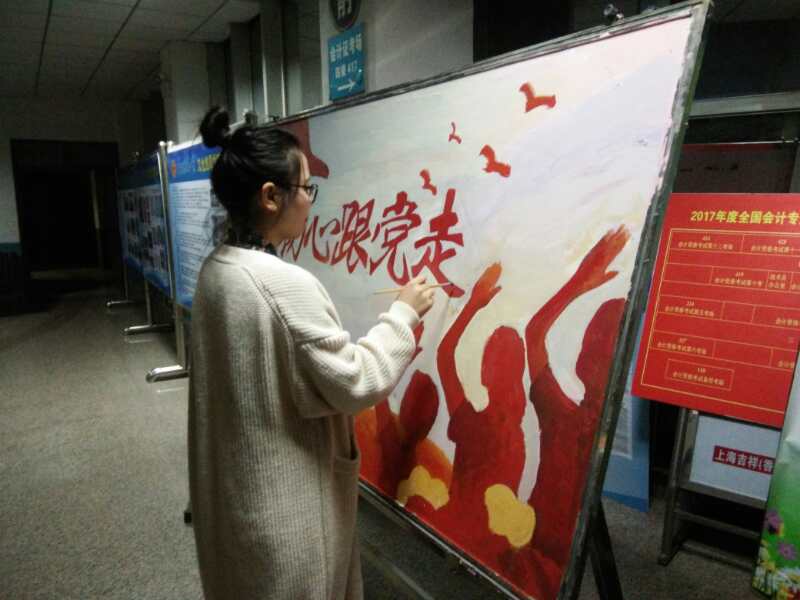 为喜迎十九大的胜利召开,文化创意学院宣传部于10月22日在16号楼进行了“喜迎十九大,我们在行动”板报设计活动。
