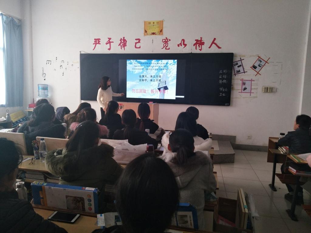班会活动的第一个环节,全体师生庄严肃立,低头默哀,以寄托对三十万遇难同胞的哀思。接下来,班主任带领同学们重温“南京大屠杀”的历史,唤起同学们的爱国之魂。最后,学生代表发表倡议书,呼吁同学们不忘民族的悲痛、不忘历史的悲剧,勇于担当民族和国家复兴的重任。同学们纷纷表示,会积极践行“党的十九大报告精神”,努力做有担当、有责任的当代大学生,为实现中华民族伟大复兴的梦想而努力奋斗。