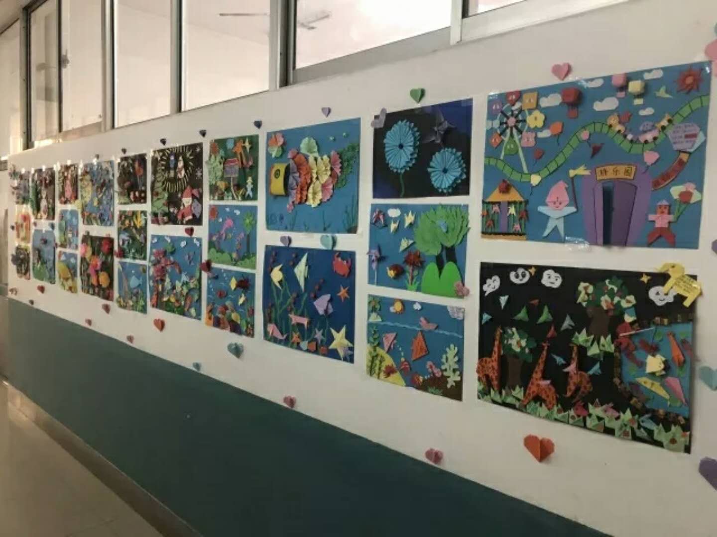 同学们综合运用绘画、折纸、纸雕、泥塑等形式,精心装饰各班的走廊墙,使每一面文化墙不仅主题鲜明,而且充分展示出班级的个性化设计,极富创意的文化墙成为校园一道亮丽的风景线。