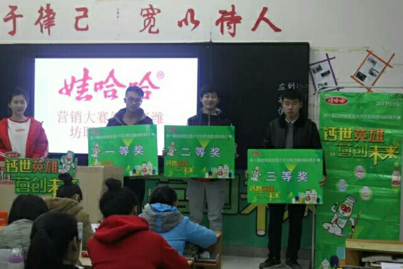 为表彰“娃哈哈”营销大赛中涌现出的优秀团队,发扬实践创新精神,12月26日下午,文化创意学院在16号楼207教室举行了第十届“娃哈哈”全国大学生职场营销实践大赛颁奖总结仪式。