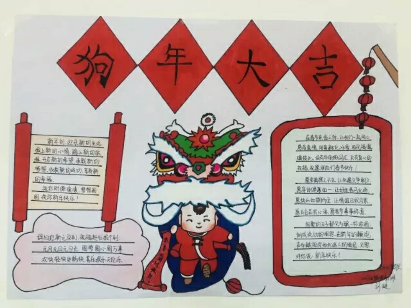 同学们广泛收集了关于新春的历史起源、节日习俗、诗词歌画等知识,了解了关于春节的传统文化。在设计过程中,同学们投入极大的创作热情,精心设计构图色彩,创作出内容丰富、形式多样的手抄报,用文字、画笔和实际行动表达对新年的祝福和期盼。