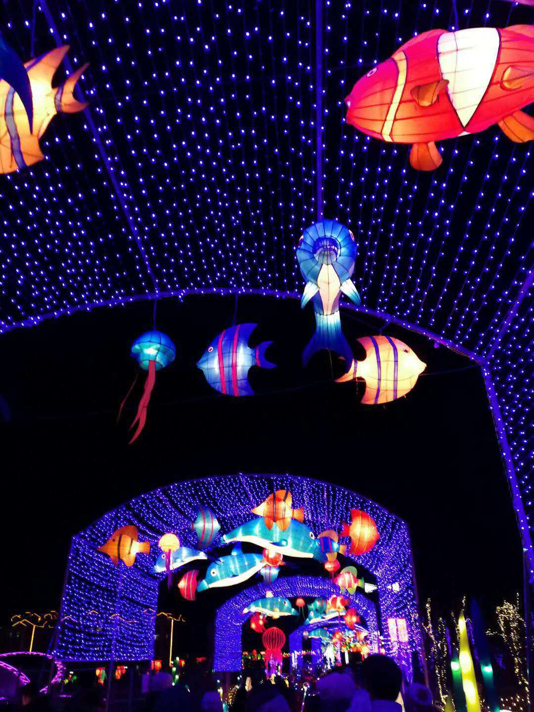进入展区正门,迎面是“正月闹花灯,狗啸景秀春”主题灯组,树上霓虹灯闪烁、彩灯绚丽夺目,仿佛闯入了“天上的街市”。随着人流前行,“建区十周年,淳淳峡山情”灯组展现了峡山的发展变化和风土人情。“穿越时光机,梦幻游乐场”灯组最受老人和孩子们的喜爱,惟妙惟肖的海洋生物随音乐游动,绚丽的灯光让人恍如置身灯的海洋。“华灯耀世界,璀璨梦光影”,红火的中国红和大红灯笼绽放在人群的四周,把人群包围在浓浓的春节氛围里。除了四大灯组板块,还有特色灯展。其中总长128米、高18米的鲤鱼跃龙门灯组已申请了上海大世界吉尼斯记录。百米紫藤花和奇珍异草组成了美轮美奂的“梦幻森林”景象。非遗传承瓷器技术——盛世宫灯,由17位非遗传承人,用5万余件瓷器,耗时3个月制作完成。