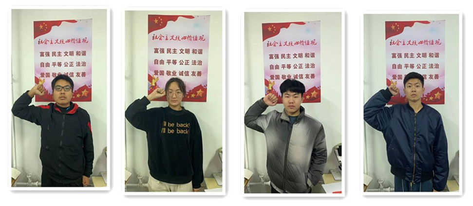 活动中,各班团支书带领同学们共同回忆了那段痛彻心扉的岁月。同时,全体同学庄严宣誓“铭记历史,勿忘国耻,发奋图强,耀我中华”。宣誓后,同学们纷纷表示:我们生活在和平的年代,虽然远离了战争的硝烟,但我们不会忘记,也不应该忘记那一段苦难而深重的历史,应该从历史中汲取前进的力量,奋勇搏击、迎难而上,为中华民族的伟大复兴而奋斗!