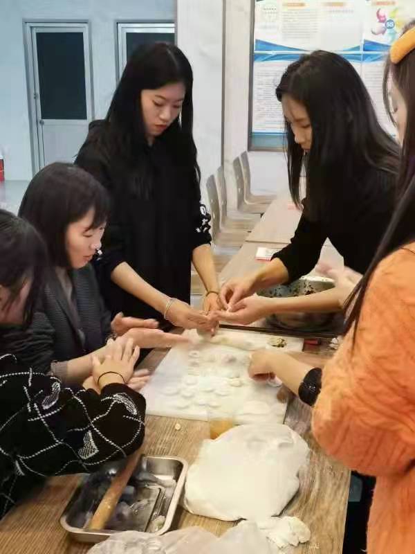 活动中,同学们相聚一堂,共同感受节日的气氛,感受家的温暖。同学们围坐在一起亲手实践,和面的和面,擀皮的擀皮,包饺子的包饺子,放饺子的更把饺子放得错落有致,同学们根据家乡的不同风俗包出了形状各异的饺子。在这和谐欢乐的氛围中,同学们既感受到了冬至节气的传统习俗,又能感受到自己动手包饺子的气氛和乐趣。