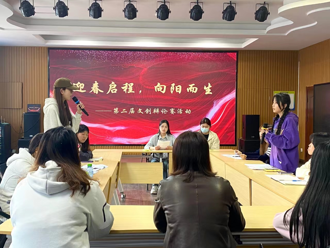 辩以明思,坐而论道;思辩青春,追寻方向。为锻炼同学们的思辨能力和团队协作能力,展示独特的见解和扎实的知识储备,文化创意学院于4月10日举办第二届“迎春启程,向阳而生”辩论赛活动。