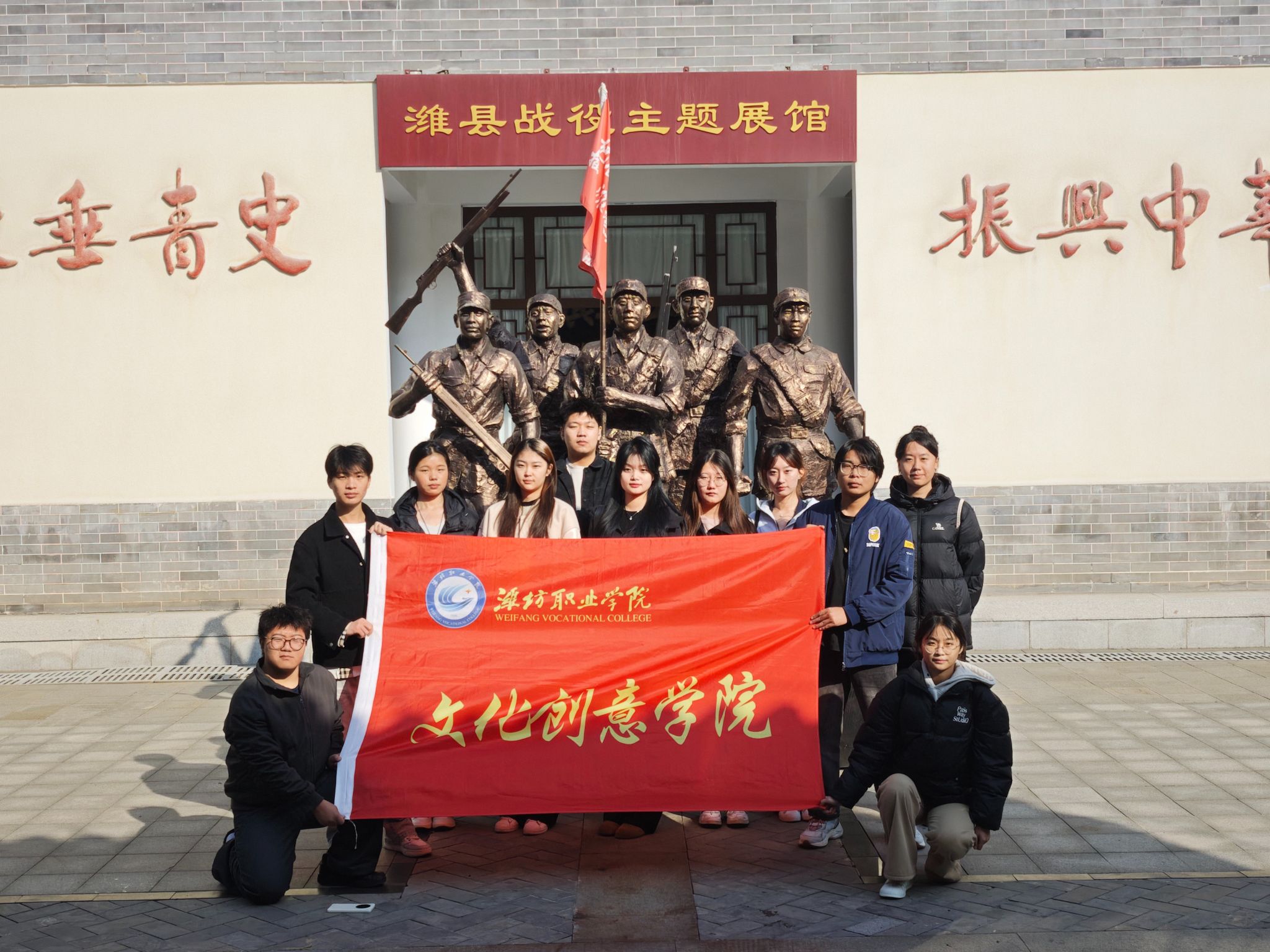为推进“学思用贯通 知信行统一”育人理念,传承红色基因、厚植家国情怀,11月10日,文化创意学院组织学生前往潍县战役展览馆开展沉浸式红色教育实践活动。