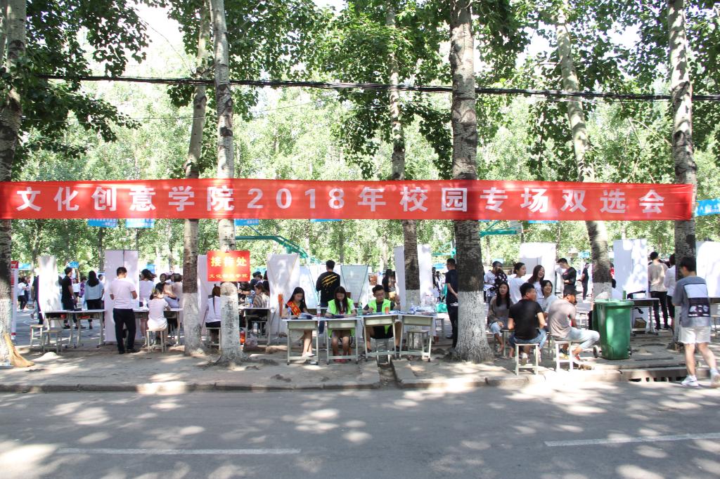 5月31日,文化创意学院在奎文校区隆重举行了2018年校园专场双选会。来自济南、青岛、潍坊、临沂、淄博、东营等91家用人单位前来选聘人才,与文化创意学院近800名学生达成就业意向。这是由文化创意学院首次独立举办的毕业生专场招聘会。学院副院长贺志强及招生就业处负责同志到双选会现场检查指导。