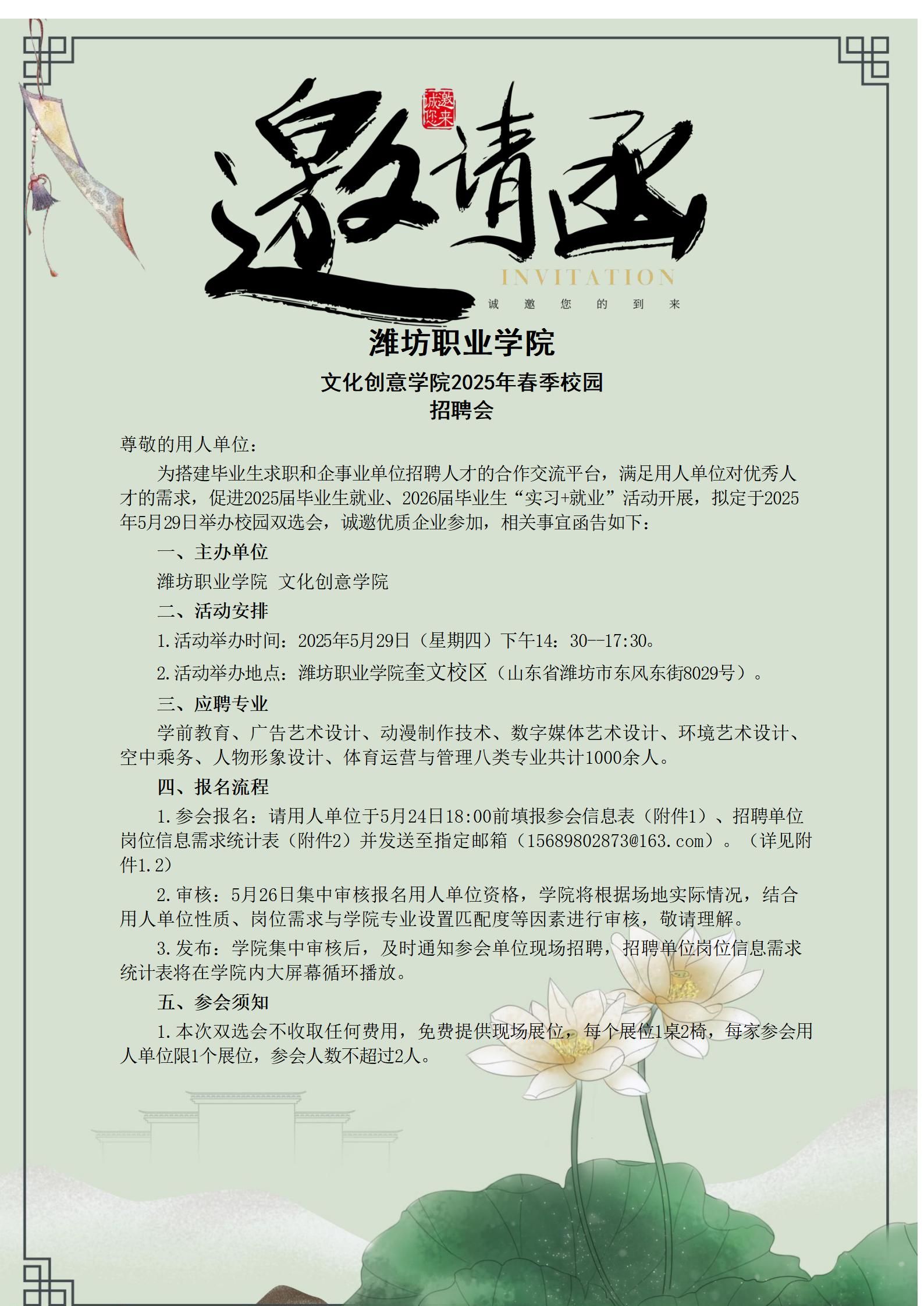 潍坊职业学院 文化创意学院2025年春季校园招聘会